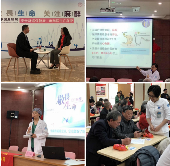 (一)本学组于2019年3月26日联合浙江省医学会麻醉学分会手术室外麻醉和PACU学组、中华医学会麻醉学分会青委会、浙江大学附属第一医院城站手术麻醉监护室党支部在浙江省杭州市长庆街道柳营社区共同组织“中国麻醉周”医学科普进社区活动:1.为广大居民讲解了无痛消化内镜的适应症、禁忌症,术前注意事项,术中过程,术后注意事项等,消除大家对麻醉/镇静的顾虑及恐惧。2. 为长庆街道柳营社区居民提供关于急慢性疼痛、肛肠科、普外科、大内科等方面的免费医疗服务。(二) 为浙江省科研青年骨干开展临床科研基础课程讲座学术活动,从细胞培养等基本技术到国家自然科学基金的科研设计与准备再到SCI文章的撰写;从临床科研设计到实施再到数据统计与分析;从理论到实例分享,为各位到场的科研青年骨干提供了一场科研知识盛宴。