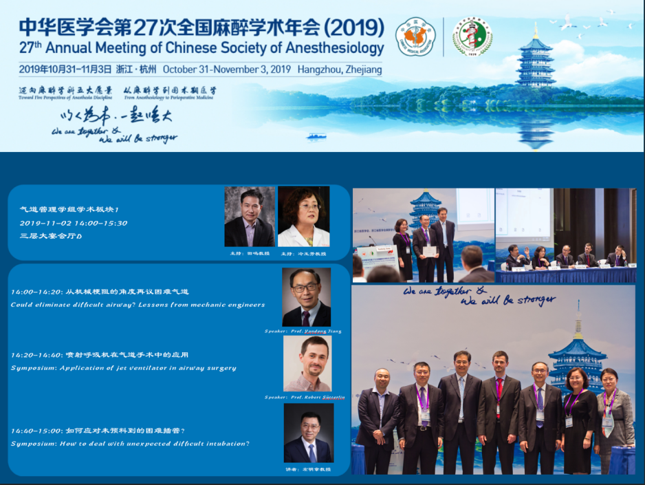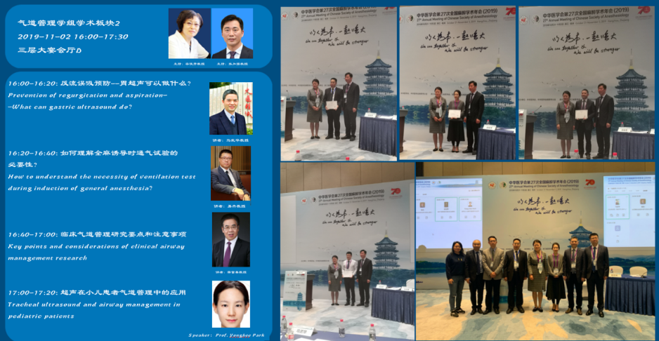 2019年10月31日—11月3日,中华医学会麻醉学分会第27次全国麻醉学术年会在杭州国际博览中心隆重举行。会议期间,气道管理学组在组长左明章教授领导下,进行了精彩纷呈的学术活动。