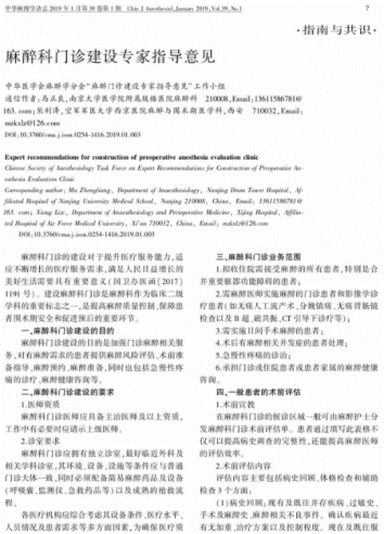 《麻醉科门诊建设专家指导意见》(已发表)