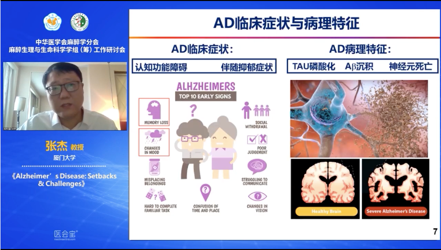 厦门大学的张杰教授以“Alzheimer’s Disease:Setbacks &challenges”为题,以自身的研究为基础,从药物研发和基础研究的角度分享了与AD相关的机制和研究进展。他指出现在对AD风险基因筛查和研发新型早诊的生物标记物是目前的研究热点;结合现阶段基础研究进展和自身的研究提出:细胞周期重启早期激活AD中神经元死亡是AD发生的关键机制;神经炎症导致神经细胞周期重启在神经细胞死亡中发挥重要作用;通过基因筛查发现和阐明了抑郁和AD相关的机制,以此为基础寻找新型药物作用靶点,为后期临床精准用药提供了理论基础。