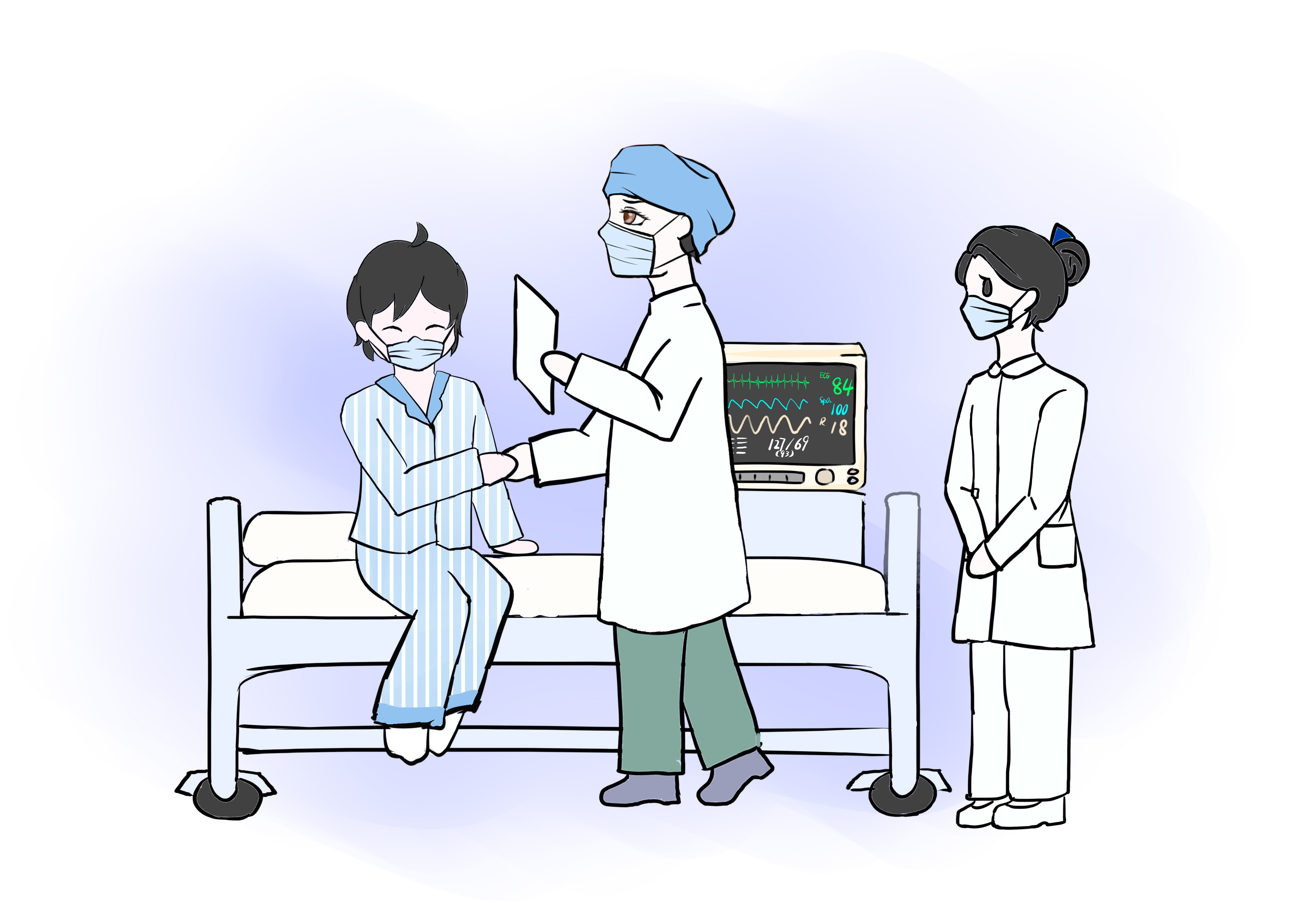 经过帅气医生哥哥的诊断,确认小昊为嵌顿疝,要接受手术治疗