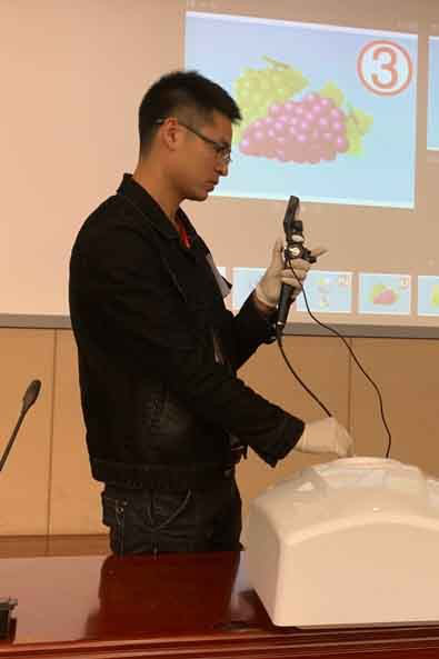 第一部分的理论授课由鲍红光主任、韩流主任、王晓亮主任等多位气道管理 方面的专家围绕可视化技术优化困难气道处理技术为学员进行理论授课。之后,相关 专家和宿迁麻醉学同仁苏小虎主任,饶丽华主任等进行了学术交流,探讨最新气 道管理的相关进展。本次会议的workshop 共分为5 个部分,分别由陈宝林、石莉、张勇、尹加林、陈利海五位气道管理专家在可视喉镜、纤维支气管镜、声门上气 道、气道超声、紧急气道五个热点问题上给予重点关注和讲解,取得了与会学院的一致好评。最后,大会举行了纤支镜技能操作比赛——“大白寻宝”, 2 名参赛选手参与角逐,得出一、二、三等奖各一名,对中青年医师学习技术,展示风采起 到了良好的作用。