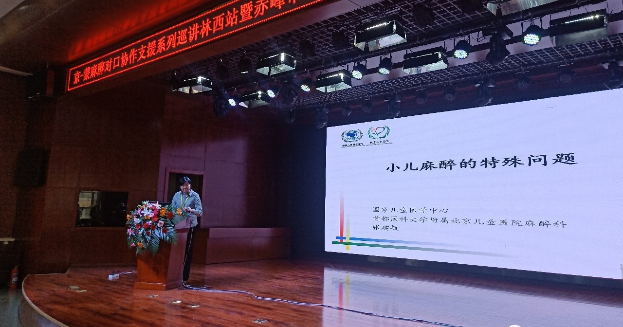 随后,赤峰市医药卫生学会麻醉专科分会主委、赤峰市医院副院长张析哲进行了会议致辞,张院长对张建敏主任和潘守东副主任两位专家能够在百忙之中来到内蒙赤峰传经送宝表示衷心的感谢,感谢林西县卫生健康委领导及林西县医院院长对麻醉科发展的重视,感谢林西县医院对本次会议的精心筹备和安排,张院长强调,在整个医院发展建设中,提高麻醉科医疗服务质量,加强麻醉科室建设至关重要,是所有外科手术顺利进行和开展的重要保障,呼吁赤峰各地区麻醉科主任要积极组织学习国家七部委下发的关于加强和完善麻醉医疗服务和意义的“21号文件”,尽快落实文件精神,同时,张院长要求各医院深入推进分娩镇痛的发展,提高自然分娩和分娩镇痛率。张院长还指出,小儿的身体结构解剖与成人不同,在麻醉管理及用药剂量都会产生很大差异,小儿麻醉管理难度加大,此次会议专门设立了“小儿麻醉”专题板块,希望大家珍惜此次的学习机会,努力提高自身的麻醉管理水平。最后,张院长再一次感谢张建敏主任和潘守东副主任的莅临指导,张建敏在会议上也表示非常高兴来到赤峰讲学,赤峰是一个美丽的地方,赤峰的麻醉同仁对学习热情令她印象深刻,预祝本次会议取得圆满成功。