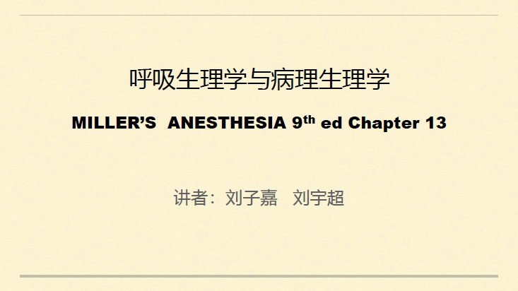 本期由刘宇超医生与刘子嘉教授为大家解读《Miller麻醉学》(第九版)第13章呼吸生理与药理。