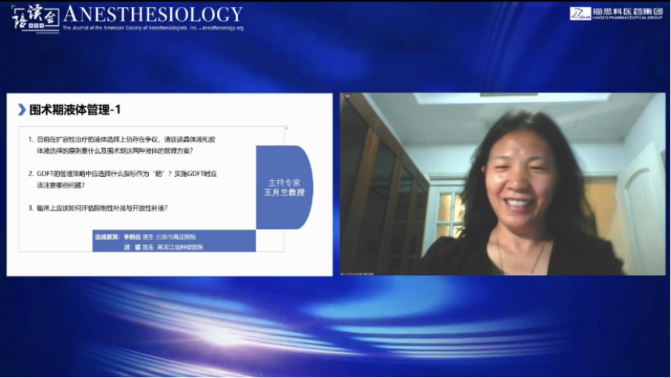 谈到稳固循环,必定离不开液体治疗。ERAS提倡以GDFT的理念及措施指导液体治疗,以减少应激反应。麻醉医生如何通过围术期精准容量调控,维持循环稳定,来对抗应激反应,是临床研究的热点之一。王月兰教授作为第三部分的主持人,以围绕围术期液体管理的相关问题与在线的大咖及一线的麻醉医师进行了探讨: