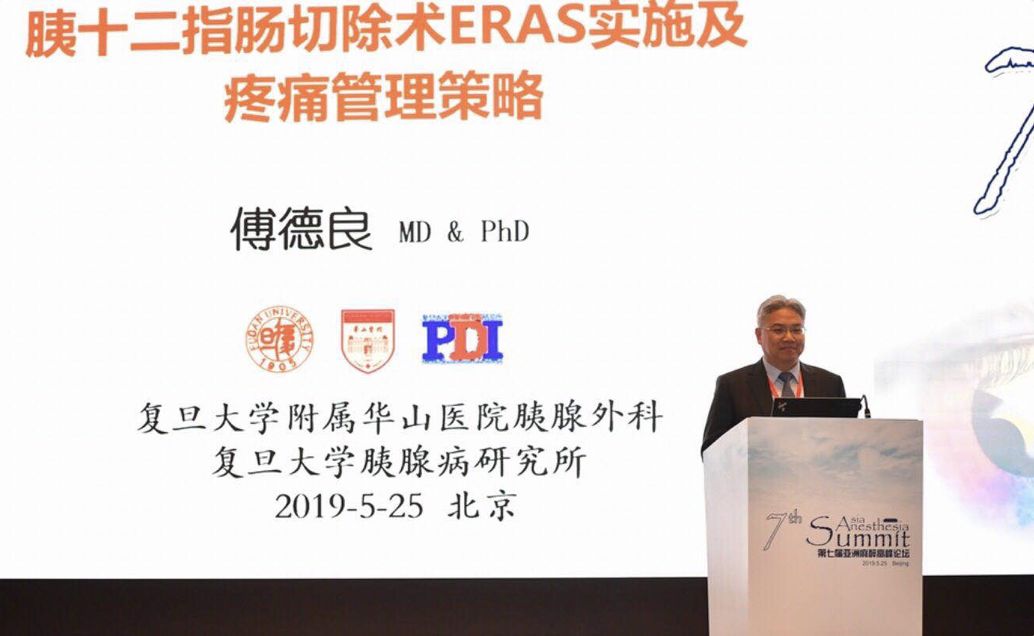 复旦大学附属华山医院外科的傅德良教授作“胰十二指肠切除术ERAS实施及疼痛管理策略”演讲