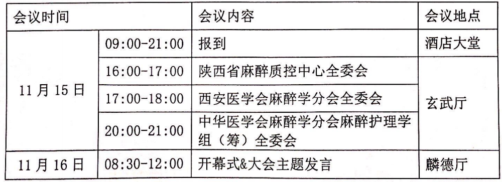 根据国家卫生计生委办公厅[国卫办医涵(2017) 1191号]和国家卫生健康委员会[国卫办医发(2018) 21号]文件精神,为加强陕西省临床麻醉专业、麻醉护理专业以及手术室护理专业的质控经验交流,促进麻醉医疗及护理专业快速发展,提高麻醉医疗及护理专业的业务水平,我们将于2019年11月15日-17 日在陕西省西安市召开“2019年陕西省临床麻醉质量控制中心年会暨西安医学会麻醉学分会学术年会、第二届全国麻醉护理高峰论坛”,同时举办“手术室护理质量持续改进培训班”。本次会议由陕西省卫生健康委医政医管局和西安医学会 共同主办,陕西省临床麻醉质量控制中心、西安医学会麻醉学分会和中华医学会 麻醉学分会麻醉护理学组共同承办,西安交通大学第一附属医院麻醉手术部协办。