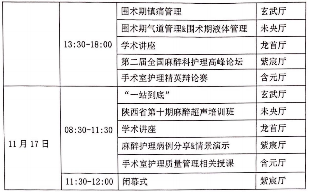 此次学术盛会将邀请徐州医科大学麻醉学院名誉院长曾因明教授、上海市第四人民医院院长熊利泽教授、上海长海医院麻醉科主任邓小明教授以及新疆医科大学第一附属医院麻醉科主任郑宏教授等全国麻醉界著名专家亲临现场做精彩学术讲座、专家点评和现场互动。会议期间将举行专题学术讲座、“一站到底”、“手术护理精英辩论赛”以及病例分享等精彩活动,同时举行“陕西省第 十期麻醉超声培训班”。会议内容丰富、形式多样,旨在为大家奉上精彩的学术 盛宴!