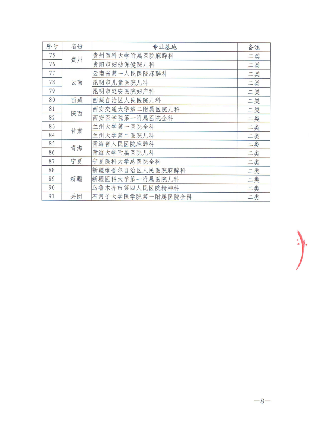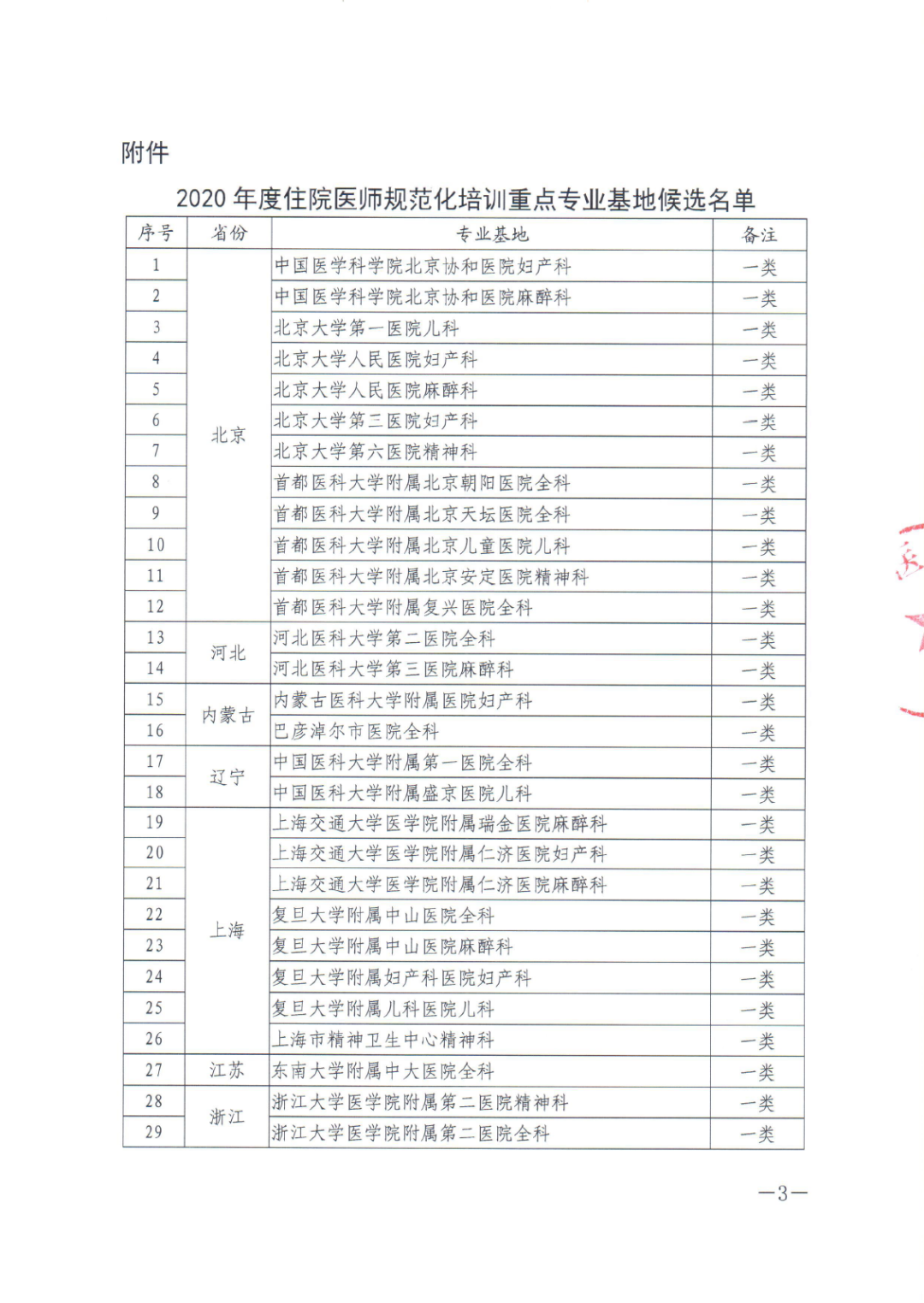 在全国遴选专家先后两轮综合评议的基础上,对东部省份、中部省份和西部省份分别符合相应得分要求的基地,按照国家住院医师规范化培训重点专业基地(一类)或(二类)予以公示。