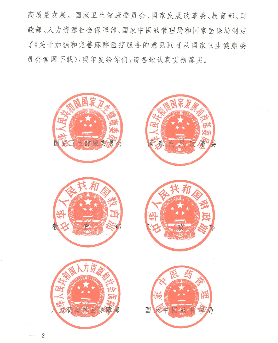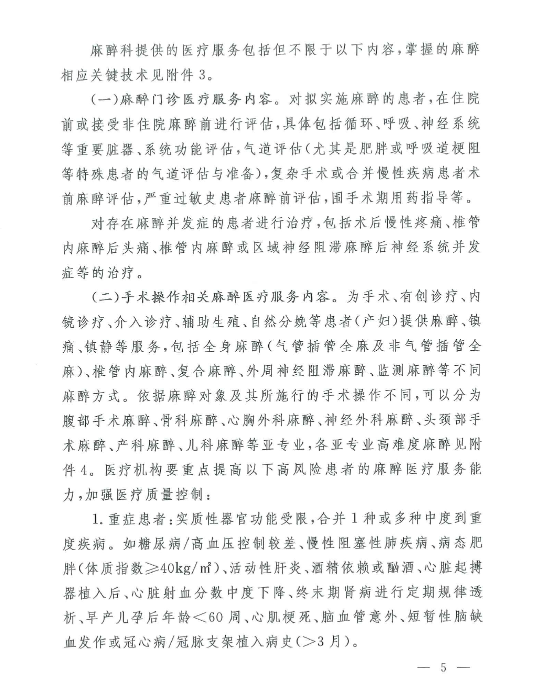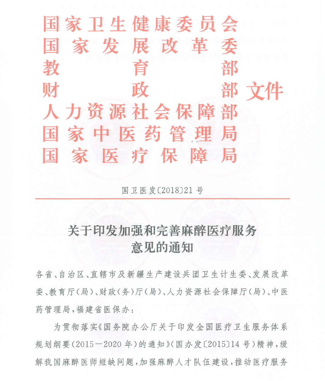 关于印发加强和完善麻醉医疗服务意见的通知
