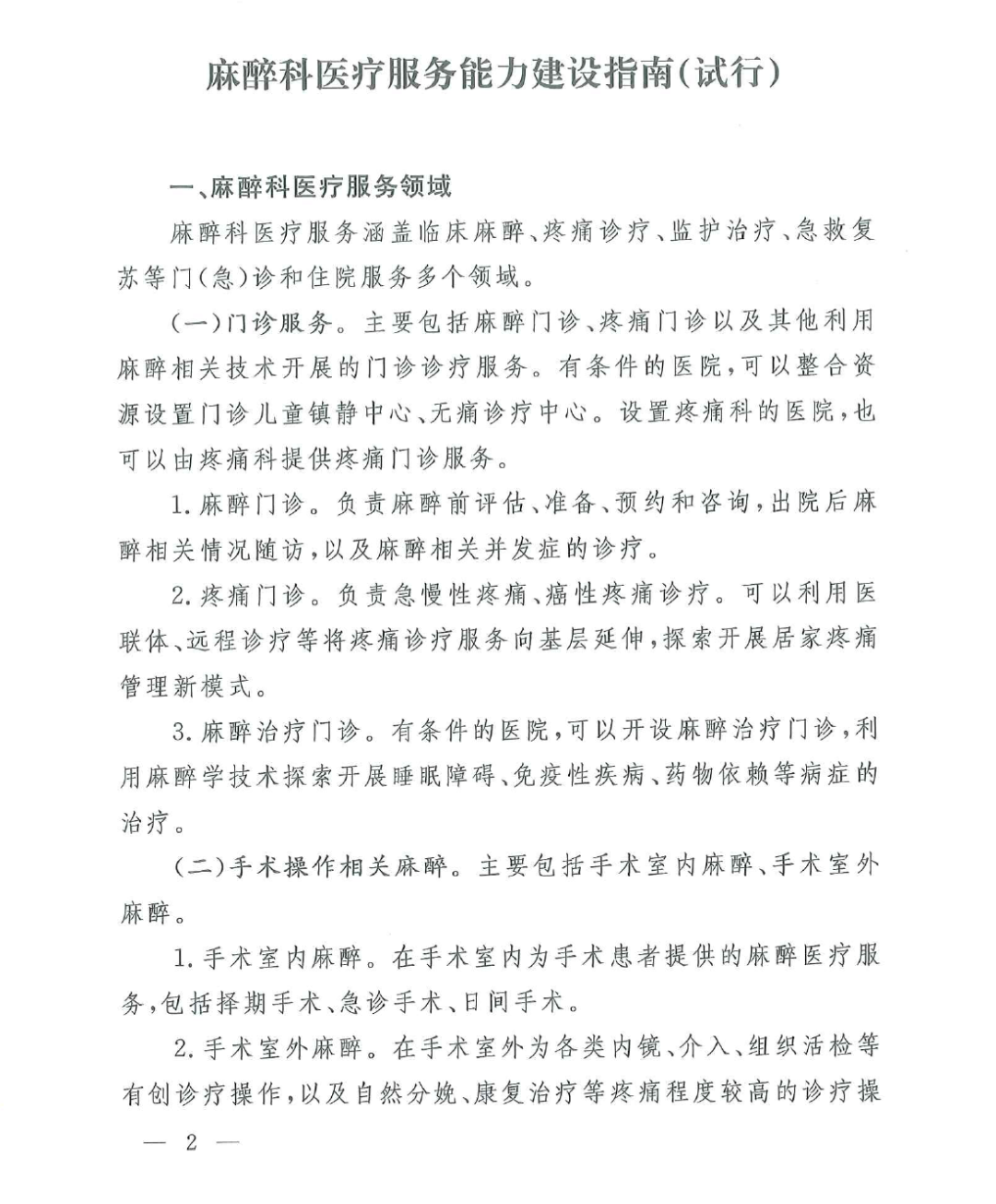 国家卫生健康委办公厅关于印发麻醉科医疗服务能力建设指南(试行)的通知