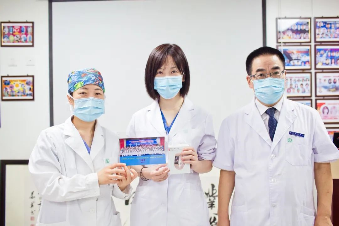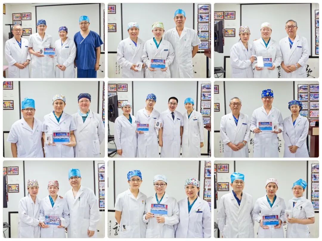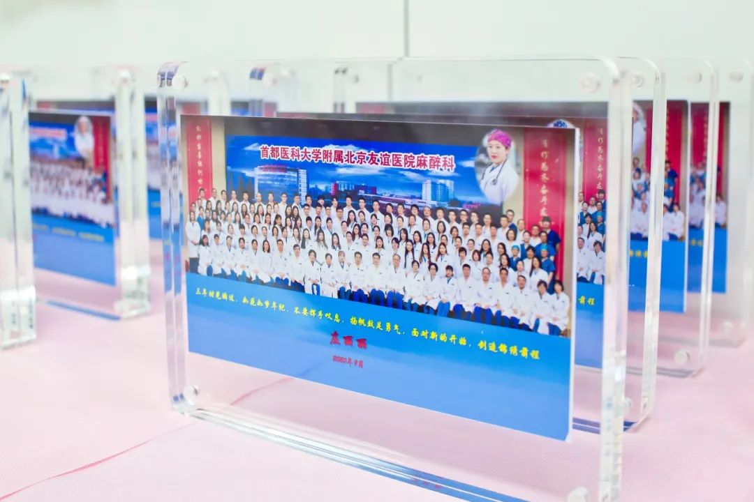 薛富善主任亲自为他们设计了神秘礼物——结业纪念牌:一面是今年结业的全体住院医师的合影、另一面是友谊麻醉科全家福,全家福上是我们的住院医本人盈盈而立,精美而又十分有纪念意义的纪念牌让同学们欣喜异常。由薛富善主任、丁冠男副主任、安立新副主任、李彦平老师以及全体带教老师为住院医师们发放纪念牌。同学们和自己的带教老师欢快的合影留念。