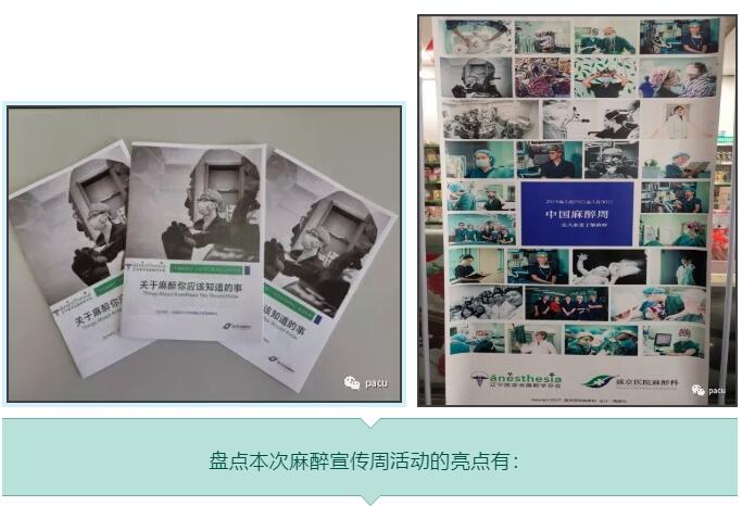 此次麻醉宣传周活动,从前期的筹备、策划等方面,由麻醉科医护人员组成的活动小组,积极参与,包括活动现场的布置、授课面的准备、PPT的制作、各种宣传科普材料的设计、印制等工作,都进行的井井有条。顺利保证了此次活动的开展,突出主题,保证宣传形式的创新化和完整化。