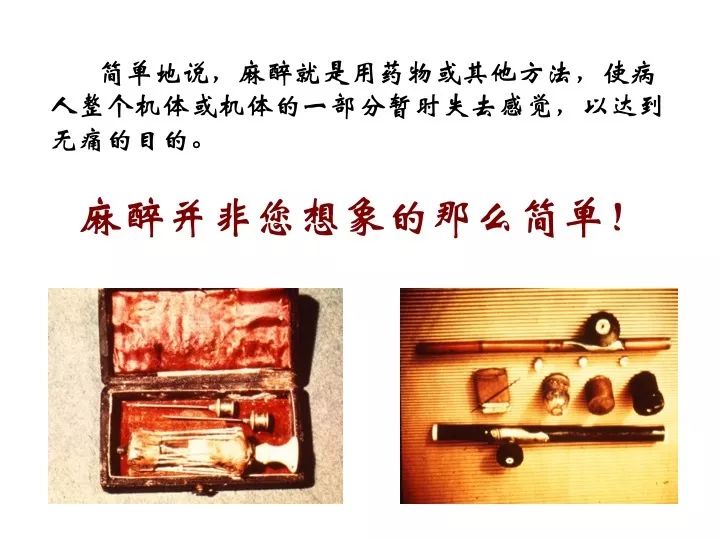 今天我想给大家汇报的是:我们麻醉的那些事儿,麻醉的过去和现在都是怎么回事?