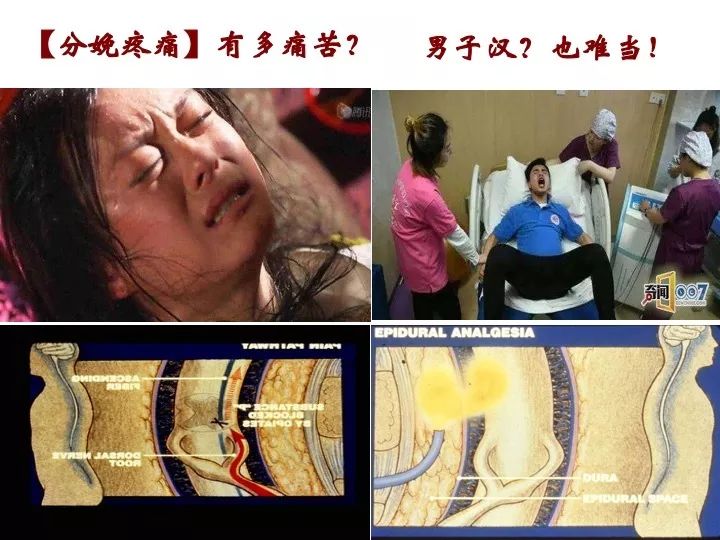 我们清醒地认识到,临床麻醉已经成为兄弟学科的期盼,成为患者的刚性需求。大家知道分娩镇痛有多重要,育龄产妇跳楼,我们的总书记亲自写下了批示说:这些现象堪忧,请重视和解决。大家看到这样一组产妇分娩的图,或许能够感受到分娩镇痛确实是痛点。我们应该尽快开展和实施予以改善。张雁灵会长刚才说男生体会不到分娩镇痛的感受,现在确实有这样的试验,通过设备模拟让男性去体会女性分娩的疼痛程度,大家可以看到有多么的痛苦,男子汉?也难当!