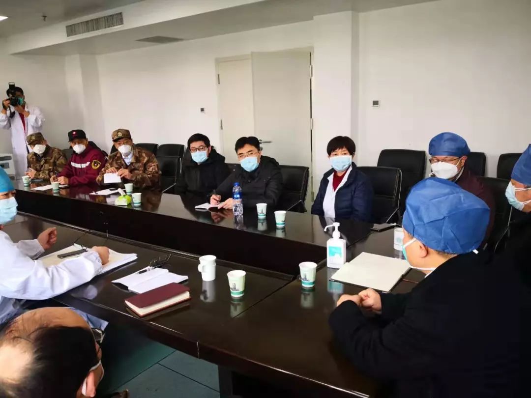 1月28日,到达武汉第一天,不顾一直忙到凌晨2:30才休息的旅途劳顿,上午11点,黑龙江援鄂医疗队与武汉市协和医院西院进行了第一次工作对接:了解协和西院病区设置,医院工作流程,完成人员分配。