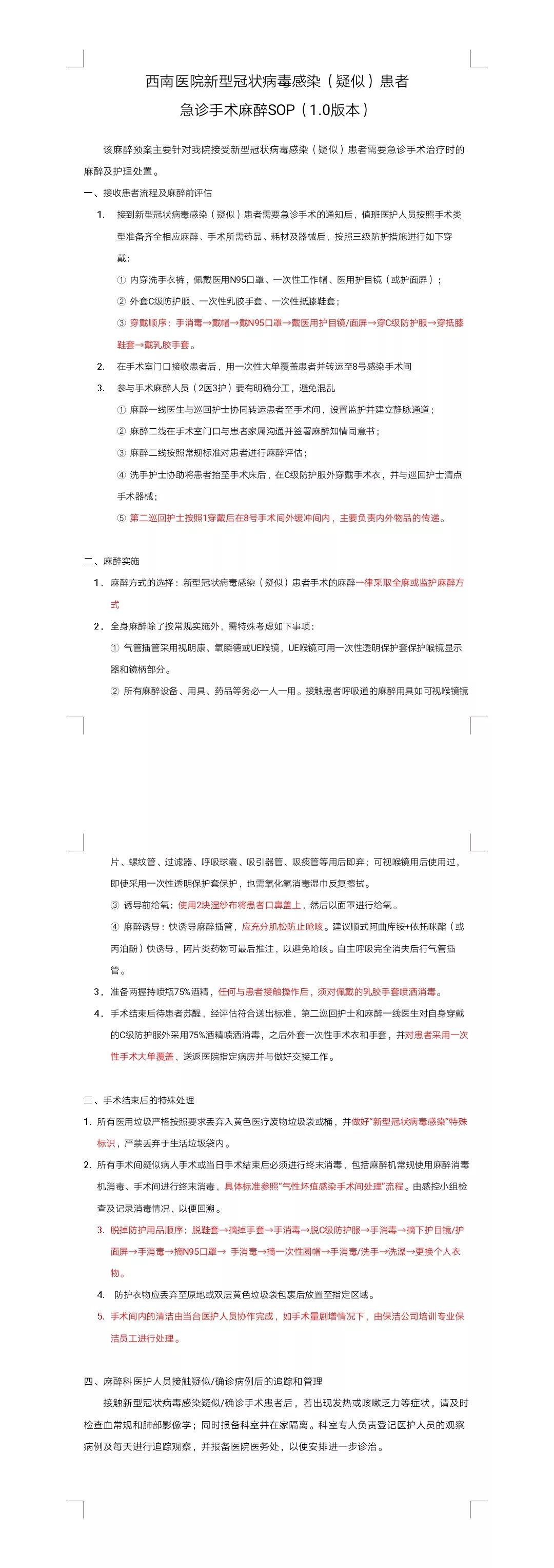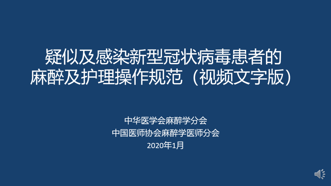对于疑似及感染新型冠状病毒的手术患者,如何安全规范的实施麻醉?对于此类患者,如何进行安全有效的救治?值得关注和探索。在此,我们将一些医院的做法与大家一起分享,并将发布相关麻醉规范操作视频。希望各医院麻醉医师们迅速行动起来,专业规范,智慧分享,为春节后即将开始的临床麻醉工作积累经验,为打赢这场战“疫”,提供麻醉专业人士应有的贡献!