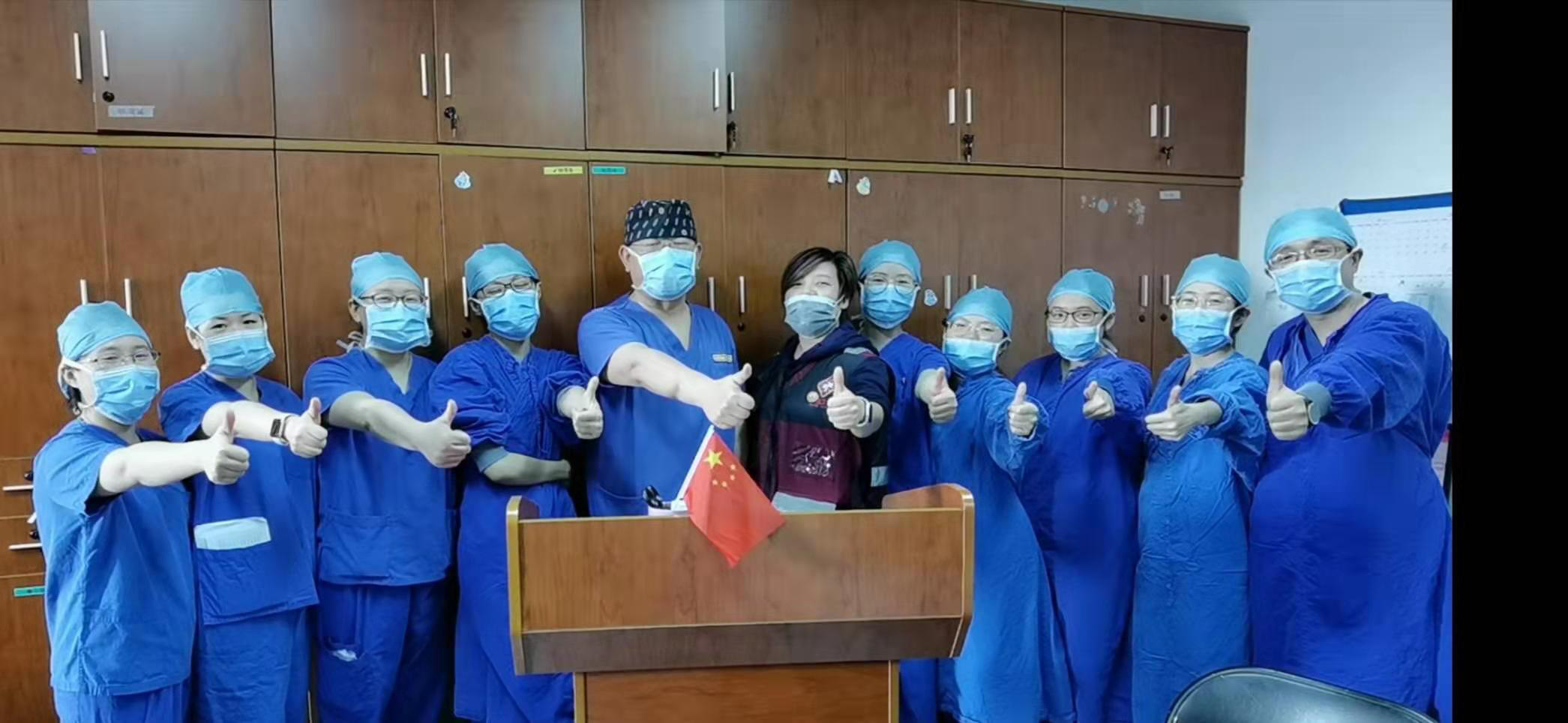2020年伊始,新型冠状病毒肺炎在湖北武汉爆发,逐渐扩散蔓延至全国各地。同其他医务工作者一样,李丽也一直密切关注着此次新冠肺炎的发展动态。身为“国家紧急医学救援团队”的一员,她又一次主动向院领导、科主任请缨,表达了自己愿意在第一时间奔赴疫情最严重的武汉“前线”支援的愿望。今日,她即将随队出征武汉,麻醉科王英伟主任携科室全体医护人员为李丽医生做出征前的最后准备。王英伟主任表示:李丽医生平日里工作、科研优秀,相信她定能不辱使命、不负重托,出色完成任务,平安凯旋,胜利归来!