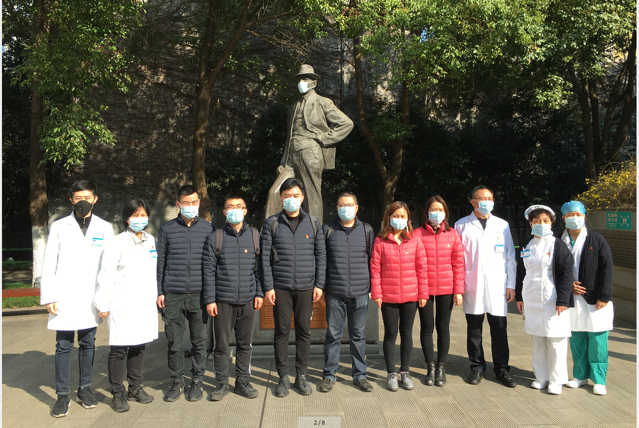 此次带队出征的是分管AICU的麻醉手术科主任医师周路阳主任,队员有麻醉手术科副主任医师朱魏主任,麻醉手术科护师王江、姚婉君、汤壮和张云,得知他们出征的消息,昨晚和今晨的朋友圈微信群布满了为他们加油,祈祷平安的正能量。命令来的突然走的也匆忙,医院连夜给大家准备了齐全的物品,同事们也都纷纷想办法为他们多凑些物资。从医院到科室,从领导到同事,满满的叮咛与嘱托、大爱与关心在不断的传递。