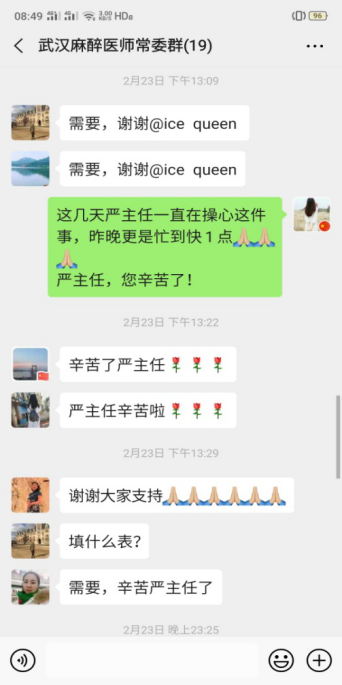 2月23日,距离武汉因疫情封城已经过去了整整一个月的时间。整个上午,在位于江岸区的武汉市中心医院后湖院区麻醉科内,严虹主任一直都在通过微信,与武汉各大医院麻醉科室的同行们进行联络,落实一批刚刚募捐到的麻醉医疗设备的分配和发放。为了妥善安排好这批抗疫前线非常急需的物资的有关事宜,她一直工作到深夜1点多。而一大早,她顾不得多休息片刻,又像蚂蚁一样争分夺秒地忙碌起来。