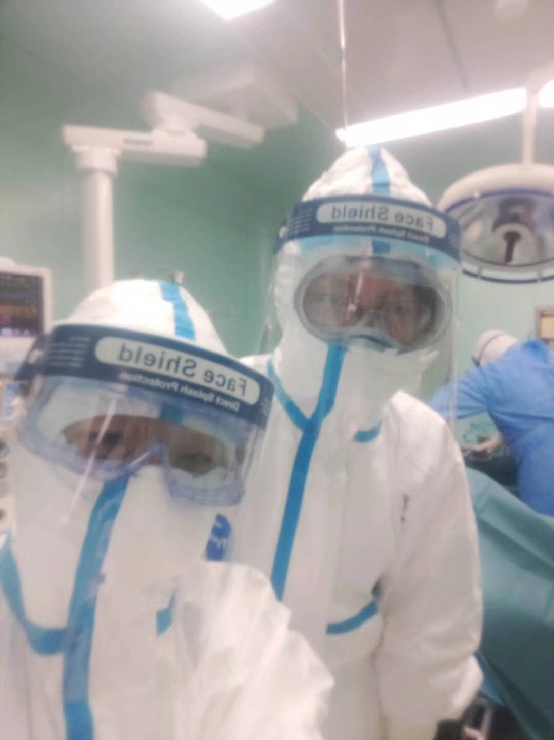 这么多的不可思议“战果”,不仅仅来自于所有“小蚂蚁”的勇敢和努力,更离不开科室负责人身先士卒的精神感召。医院最早的五个危重病人的气管插管,都是任凌云副主任亲自操作完成的。尽管她很清楚在没有充分防护下插管的被感染的几率很高。但她也知道,这个时刻,“将熊,熊一窝”,自己绝对不能退缩。更何况看着手术台上被病魔折磨的患者,甚至有些还是自己昔日的同事,她毫不犹豫的踏上了“战场”。