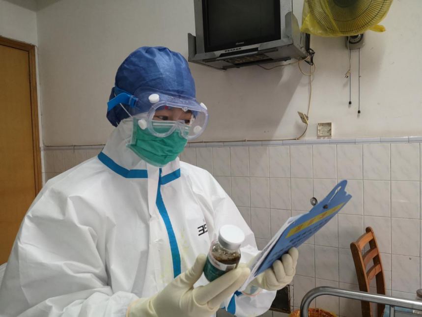 护士胡蕾,是科室第一批奔赴一线参加防疫保障任务的人员之一,在感染内科三病区承担防疫相关护理工作,期间她的丈夫和孩子相继生病:一岁半的小孩在湖北浠水老家发烧、咳嗽,公公婆婆在老家照顾;老公在武汉家中,持续高烧,最高温度达38.8℃。小孩生病期间,她无法陪在身边,只能靠电话、微信视频进行远程指导和安抚。作为孩子的母亲,没有谁比她更牵挂和担心孩子的病情;作为妻子,没有谁比她更在乎和焦虑老公的身体状况。但是她告诉自己必须坚强,乐观面对,要给家人满满的正能量。小孩病情在慢慢好转,但独自在家的老公高烧持续不退,疫情时期,她不得不临请假回家陪老公就医看病,三天后老公病情好转,她又奔赴前线继续参与保障工作中。无声坚守,两边牵挂,一边是老公孩子相继发烧咳嗽,一边是迫切需要她的患者,舍小家为大家,每班每岗履职尽责。