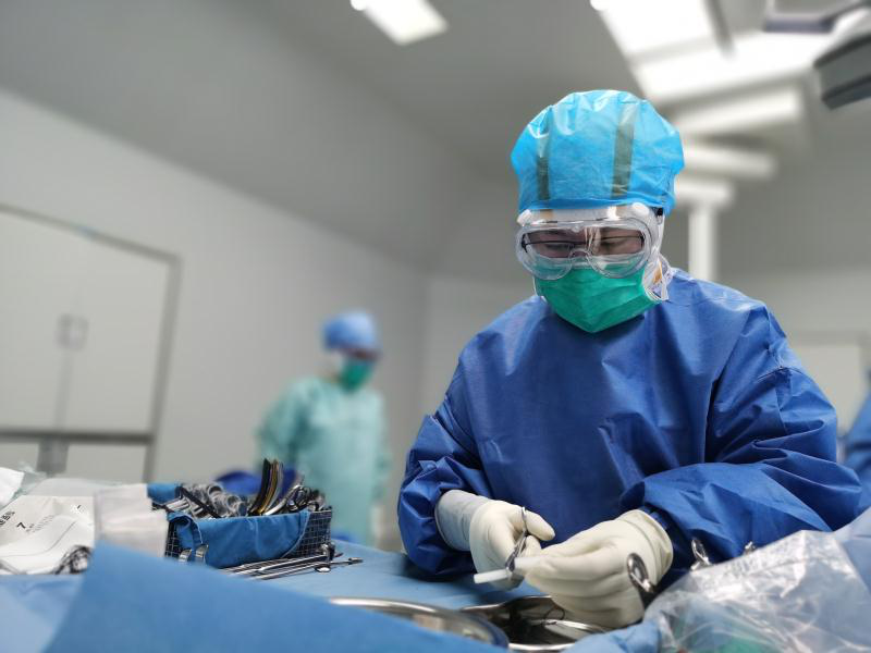 除发热门诊、感染病区、留观病区、ICU各个专区外,我们手术室也是疫情防控的重要防线。面对疫情肆虐的严峻形势,面对接踵而来的确诊或疑似新冠肺炎手术,我们在科室主任、护士长的领导下,在各位骨干的齐心协力下,参考文献资料、借鉴外院经验,结合科室实际,加班加点梳理、制定确诊或疑似新冠肺炎患者围术期的各项防护制度、流程,包括术前患者评估,转运,手术间准备,医护人员准备;术中手术注意要点,防护细节;术后手术间、器械、敷料、物品等的终末处理;防护服穿脱流程、区域等。并要邀请院内外感控专家进行现场指导和把关,不足之处逐步落实改进。每个环节进行操作演练,并录制成视频供大家学习、培训,确保人人掌握、人人过关。虽然没有在抗疫最前线,但是我们的抗疫行动不落后半点。