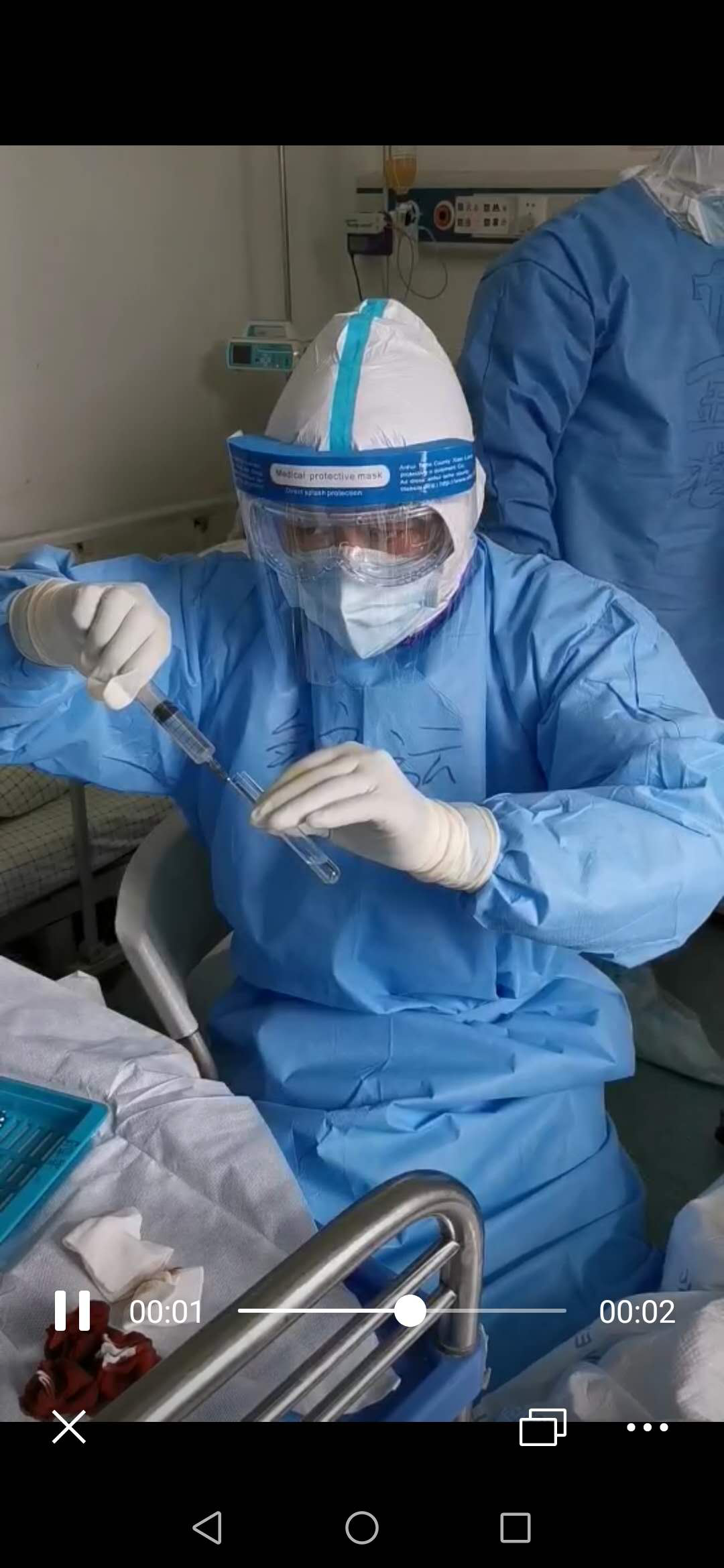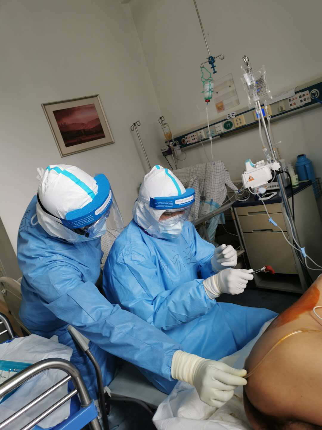2月15号晚上十一点,我突然接到我们领队在张泓院长的电话,说有一个病人情况危急,可能需要插管,作为全队唯一一位麻醉科医生,负责插管任务责无旁贷!我迅速从宾馆出发前往医院,武汉的深夜寒风刺骨,到达医院后得知病人情况不好,于是我紧急穿上防护服进入了隔离病房。该患者为一男性病人,39岁,新冠肺炎确诊,2年前患者系多发性骨髓瘤伴脑、肺、胸腔等侵犯,经过治疗,患者肿瘤病情得到显控制。2天前患者出现神志改变,被救护车运送至协和肿瘤中心,入科5分钟左右,患者突然出现抽搐、随之呼吸、心跳停止,在班医生立即予以心外按压、给氧等抢救措施。大约3分钟后,该患者呼吸、心跳恢复。当我到达病房的时候该患者呼吸窘迫,脉搏氧饱和度只有70%左右,意识不清。在张泓领队指示下,对该患者进行了一次紧急会诊,会诊意见一致认为该患者病情危重,有紧急气管插管,有创呼吸辅助的指针。就在我在准备气管插管相关物品的时候,患者再次出现了抽搐,紧接着二次心跳骤停。时间就是生命,在来不及穿正压防护服,我紧急对该患者进行了心肺复苏和气管插管。由于该患者基础疾病较多,全身情况很差,再加上之前有过一次心跳骤停,抢救难度非常大!肾上腺素连续给了5mg,心脏按压30分钟后自主心跳仍然没有恢复,就在我们准备宣告放弃的时候,奇迹出现了,心跳奇迹般的恢复了窦性心律!