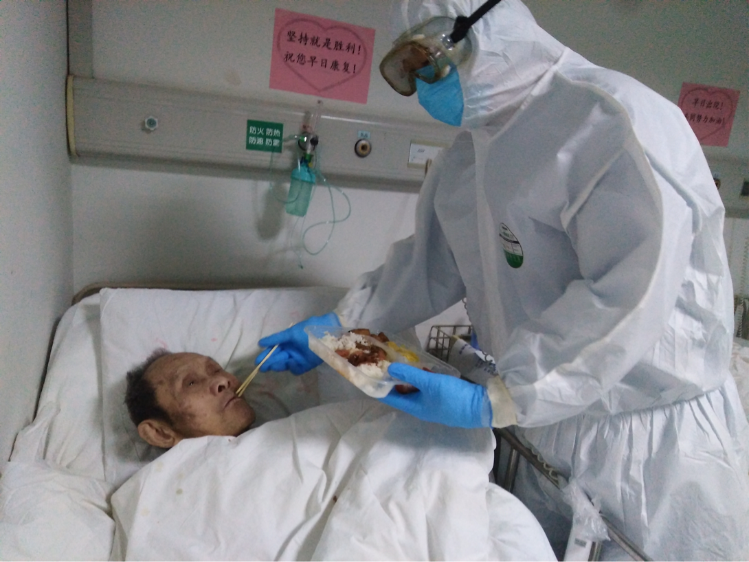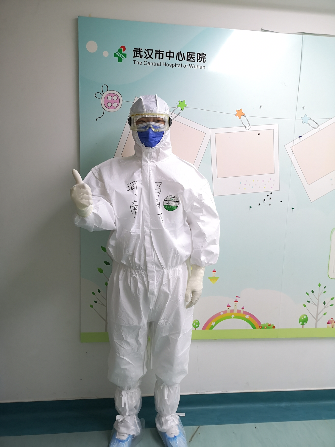 初到武汉,本来樱花浪漫的城市安静的可怕,感觉空气中处处隐藏着病毒,我们高度戒备,来到住所已是凌晨。首先我们要对自己的房间分区:污染区,半污染区,清洁区。领取配备的物资,安顿好已是凌晨三点。第二天张一红主任接洽医院,最终我们接管武汉中心医院,疾风知劲草,烈火炼真金,就让我们放手一搏!经过培训,我们接管的病区正式收治病人,到真正与新冠病毒搏斗时间了,隔离服两层,口罩两层,护目镜,手套,尿不湿,经过一个小时的武装,全身包裹的密不透风。每天6小时的工作强度,下班以后已是汗流浃背,脱掉防护服的那一刻也是最幸福的时刻。原来幸福可以这么简单。