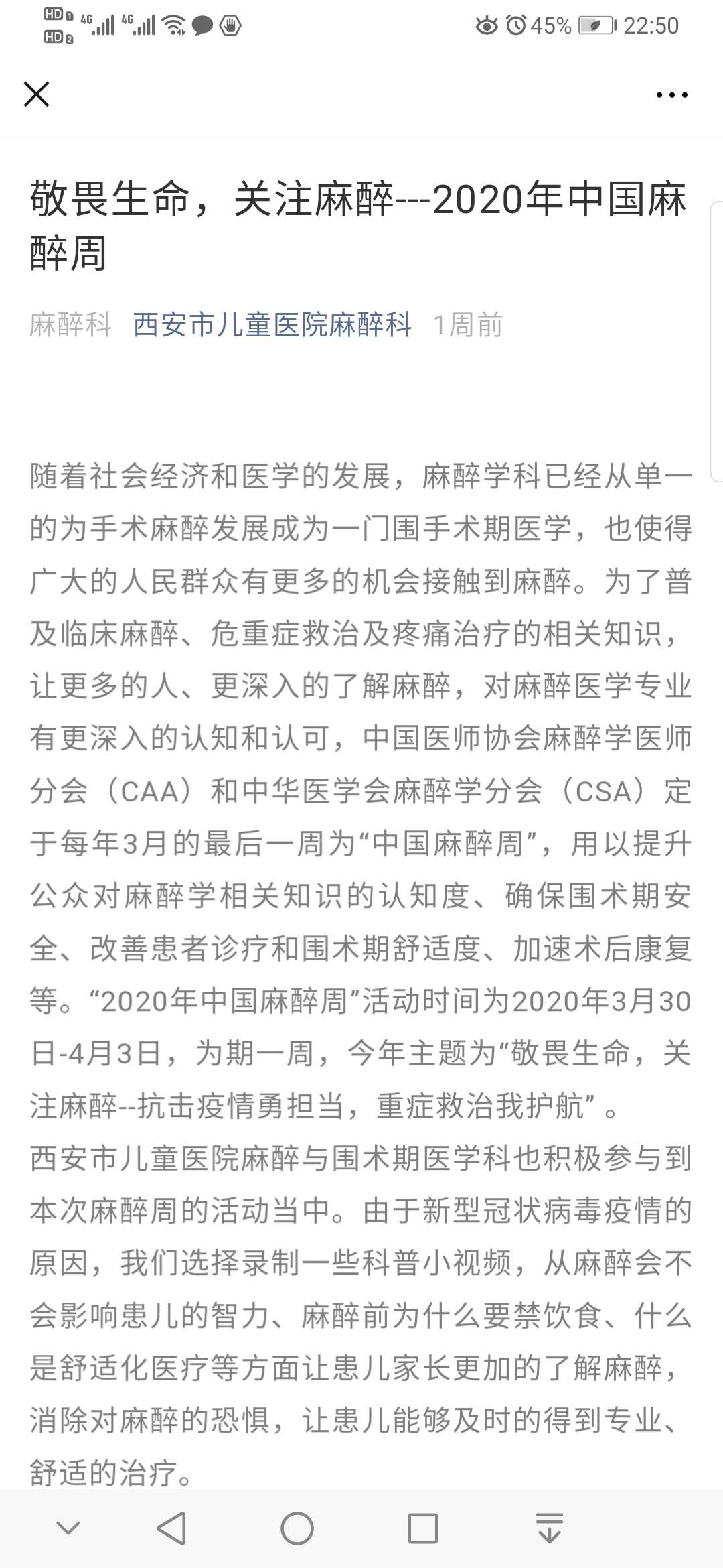 西安市儿童医院制作的麻醉科普知识微信推送