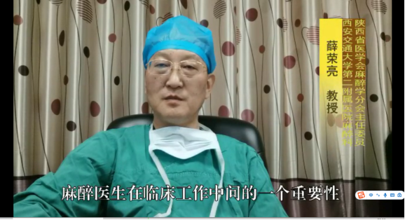 1842年3月30日这一天,美国Georgia麻醉医生Crawford Long为一位摘除颈部肿块的患者成功实施了第一例乙醚全麻,从此揭开了现代医学的序幕。为了纪念这一伟大的历史事件,每年的3月30日被定为“国际医生节”,而我国自2017年起将每年3月的最后一周定为“中国麻醉周”。今年是第三个中国麻醉周,恰逢全国乃至全世界人民抗击新冠疫情的关键时刻,因此今年的主题是“敬畏生命,关注麻醉--抗击疫情勇担当,重症救治我护航”。在中华医学会麻醉学分会的统一安排下,陕西省医学会麻醉学分会主任委员薛荣亮教授的组织下,全省多个医院麻醉科克服疫情期间无法进行常规活动的困难,积极开展线上科普宣传活动,让人民群众了解麻醉医生在疫情中发挥的作用,以及麻醉医生的日常工作,使麻醉医师、麻醉学走向社会。据不完全统计,全省不完全统计,共有20余家医院进行了线上和线下科普宣传活动,制作短视频4个具体如下: