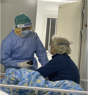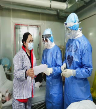临行前再次减掉一头秀发,再一次告别年迈的母亲和读书的女儿。张燕护士长是九二〇医院麻醉科的护士长,曾参加过国际维和、抗震救灾、非洲抗击埃博拉疫情等多项任务。多年的手术室经历使她具有更强的无菌观念、更认真的查对意识、更加能吃苦耐劳的坚韧性格和体力。进驻火神山之后,张燕护士长负责病区及医务人员的防护监督工作。一丝不苟、严格要求是护士长一贯的作风,被并肩同行的战友们称为“最严格的监督官”。