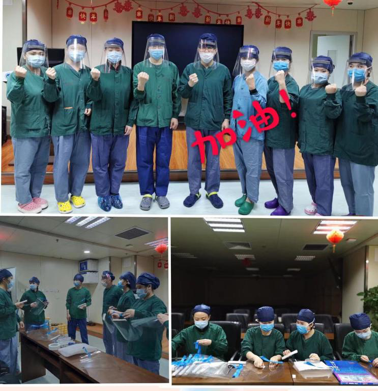 做好急危重症患者的围术期管理,必须要解决诸多问题。其中,解决物资短缺尤为关键。抗疫期间全院防护用品奇缺,而麻醉手术部又是防护重地,为了加强术中防护,麻醉手术部的同志们集思广益、自力更生制备防护面屏,降低手术室交叉感染风险。