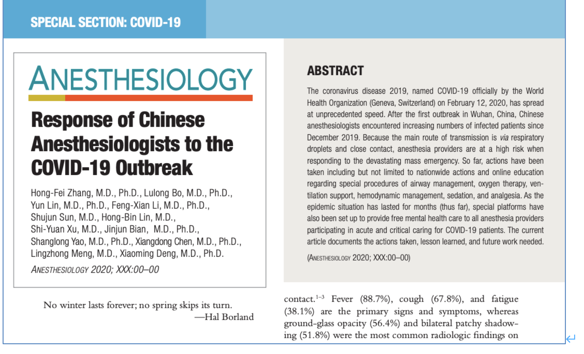 特殊时期的中国麻醉周,长海医院依然坚持举办“学术周”序列活动。开展实施了一系列学术、患者咨询、教学和科普宣传活动。疫情期间,长海麻醉学部积极总结抗疫一线的经验,并将其发表在麻醉学国际顶级期刊《Anesthesiology》,得到国际同行的广泛关注。长海医院麻醉学部依托“麻海新知”频道,共发布6篇抗疫主题的学术文章,麻海新知共发布2期学术内容。上述活动都吸引了大批麻醉学专业和非麻醉学专业的医务人员参加,在学术交流和临床培训的专业层面更好的诠释了“中国麻醉周”的活动主题。