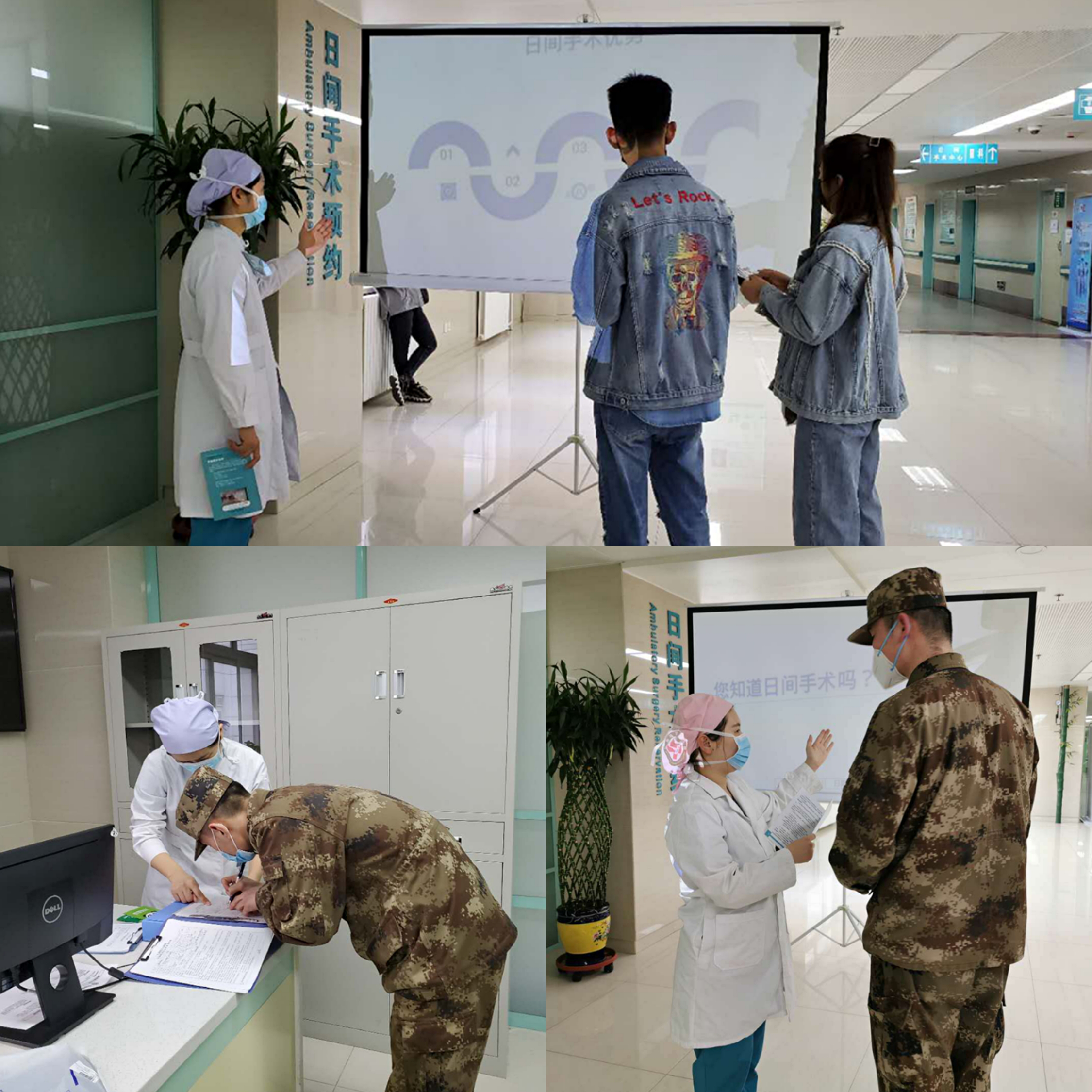 总院特色麻醉科主导的日间手术中心为解决“住院难、手术迟、看病贵”发挥了重要作用。日间手术中心为全院搭建手术平台,高效利用医疗资源,解决部分科室床位紧张的难题,为患者带来安全舒适的就医新体验。日间宣讲团队为各个外科门诊为医生发放日间手册,介绍日间手术各种信息,现场指导外科医生如何为患者预约进行日间手术,麻醉科与外科携手共同为患者创造安全,快捷,方便,低费用的就医环境,切实解决患者需求。间相关知识的投影滚动播放,主题为“2020您知道日间手术吗?”让群众了解日间手术的定义,就诊流程,着重介绍日间手术与传统手术的区别,纠正群众对于日间手术的误解,宣传日间手术的优势及特点以及特色化绿色通道:术后随访,随时解决疑难问题,同时电话咨询,双向通道,安全有保障,为广大群众开辟新的就医渠道。