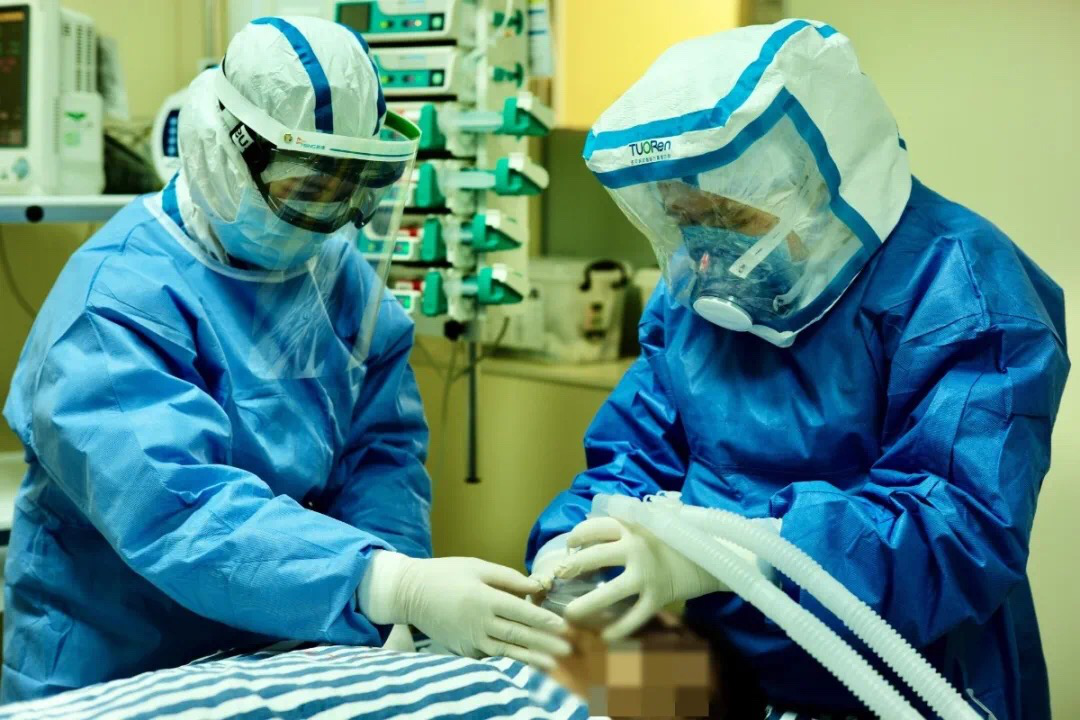 广西抗疫援鄂麻醉医师在一线为患者进行气管插管的工作照